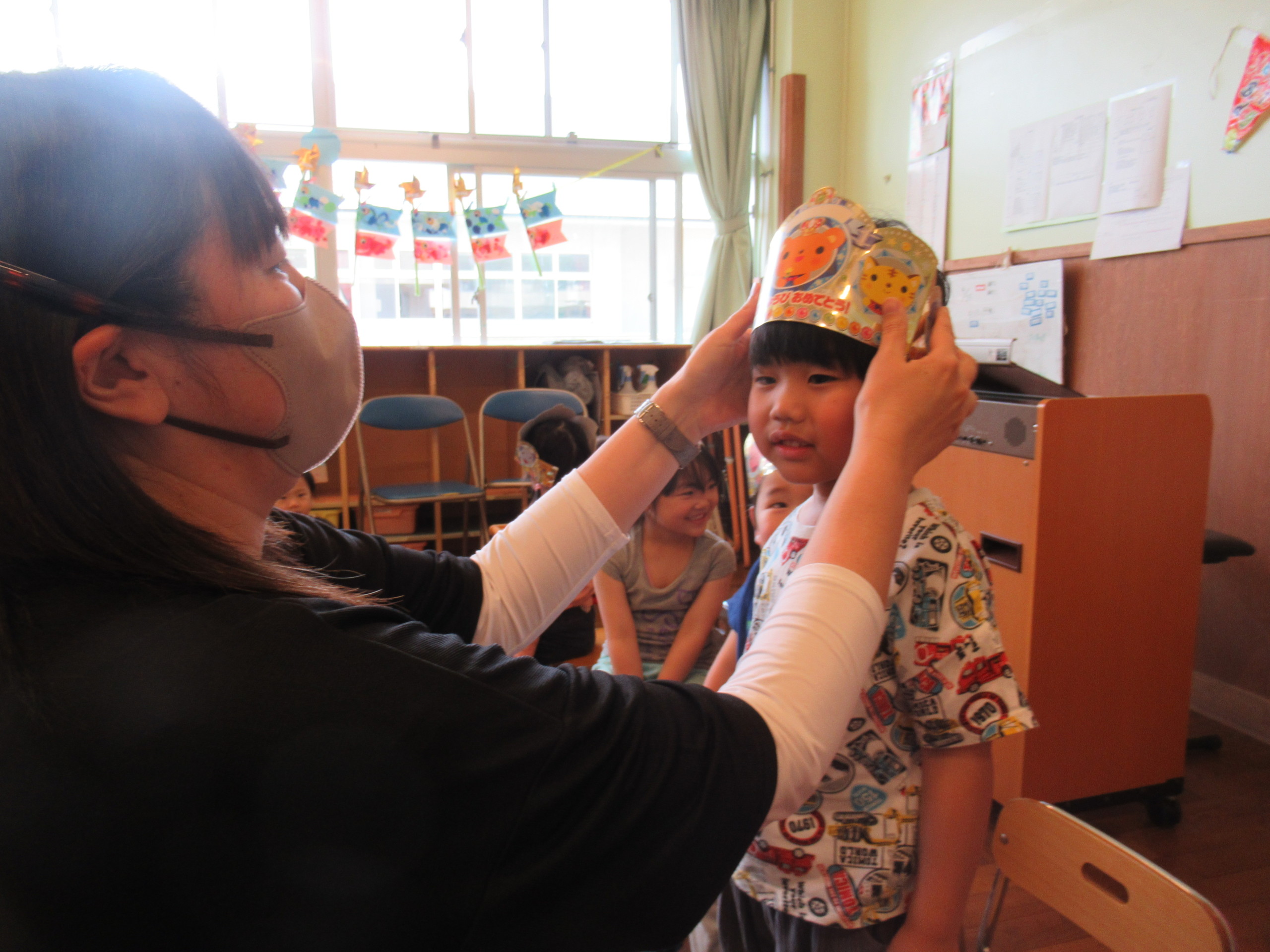 はじめに園長先生から王冠をかぶせてもらいました👑