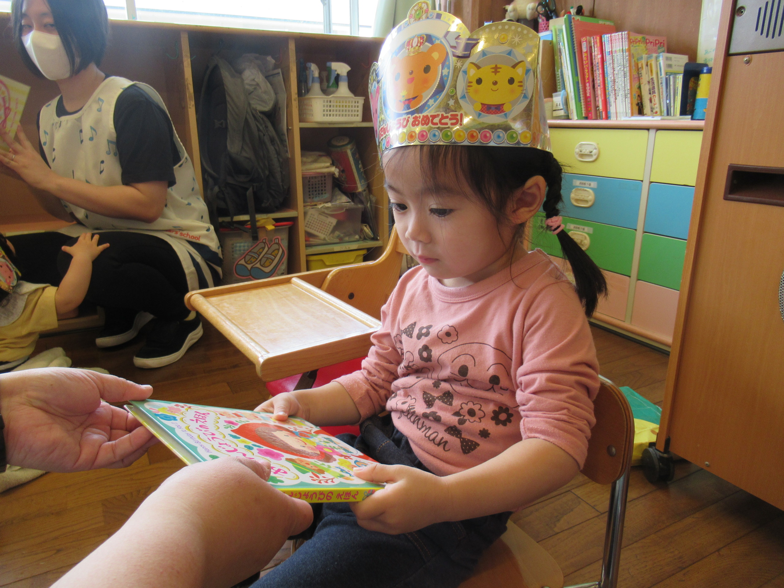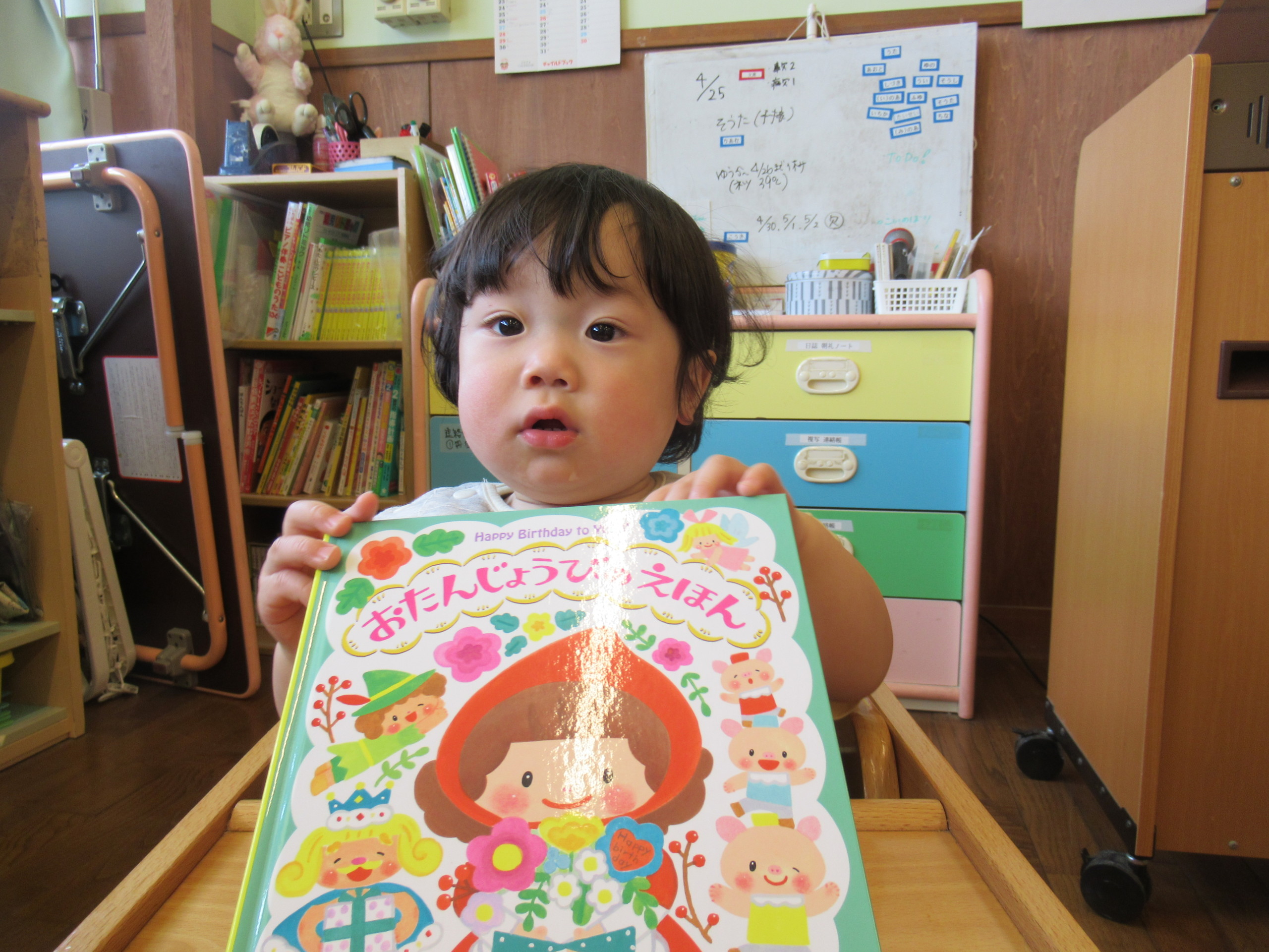 『ハッピバースデー』の歌でお祝いをしたり、先生たちから誕生日ブックのプレゼントもありました!
