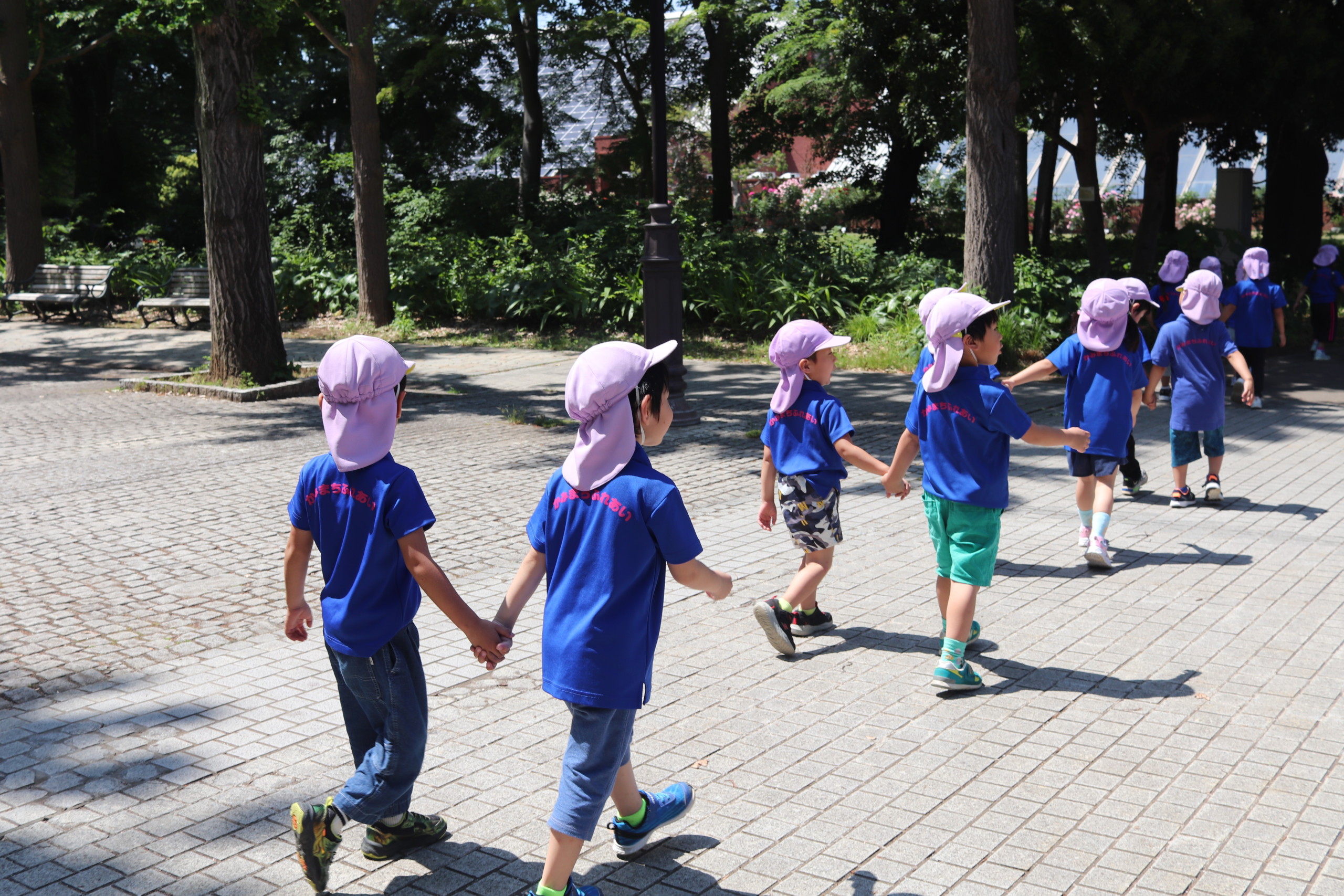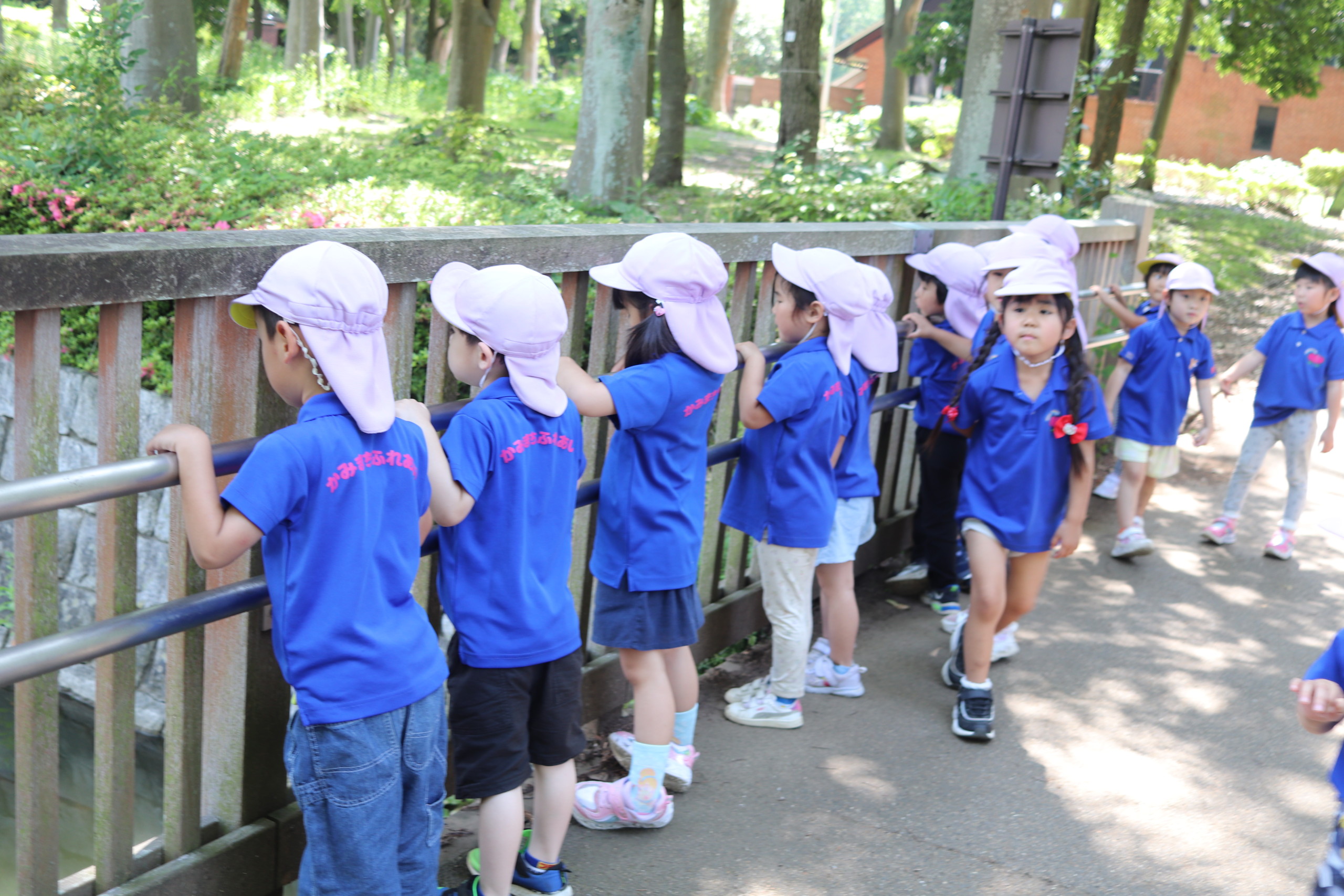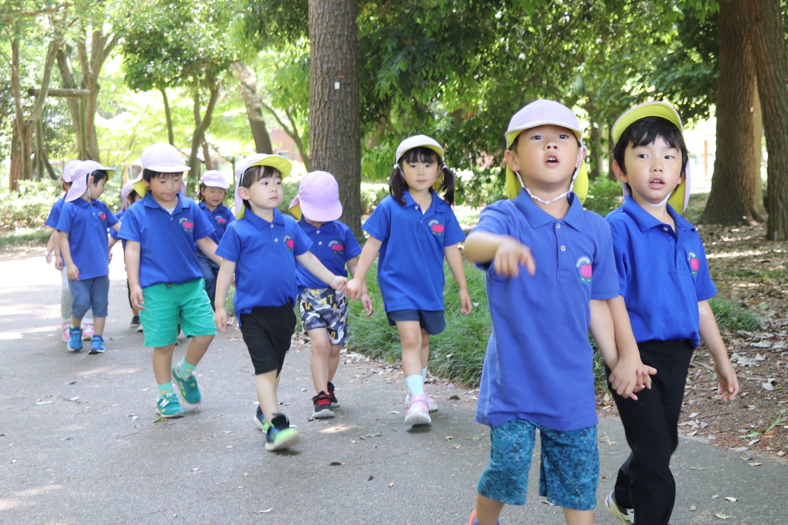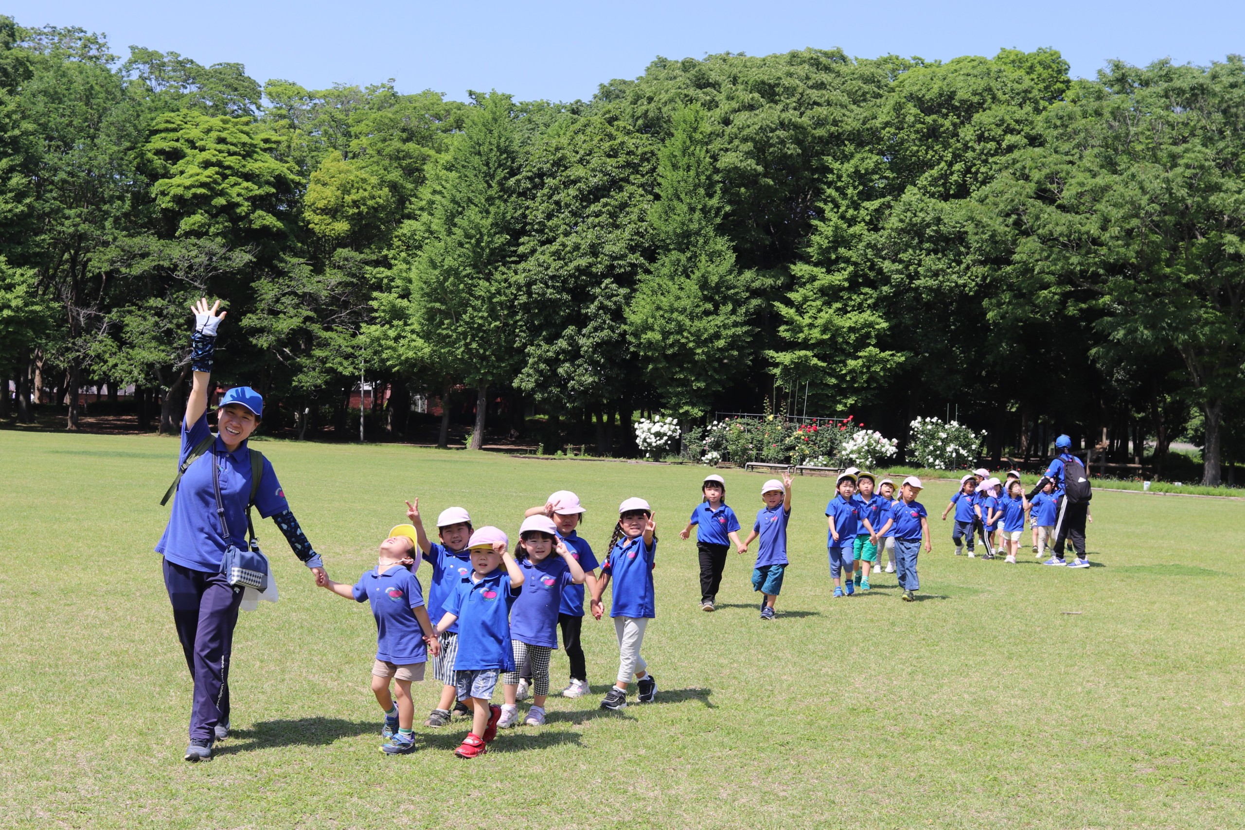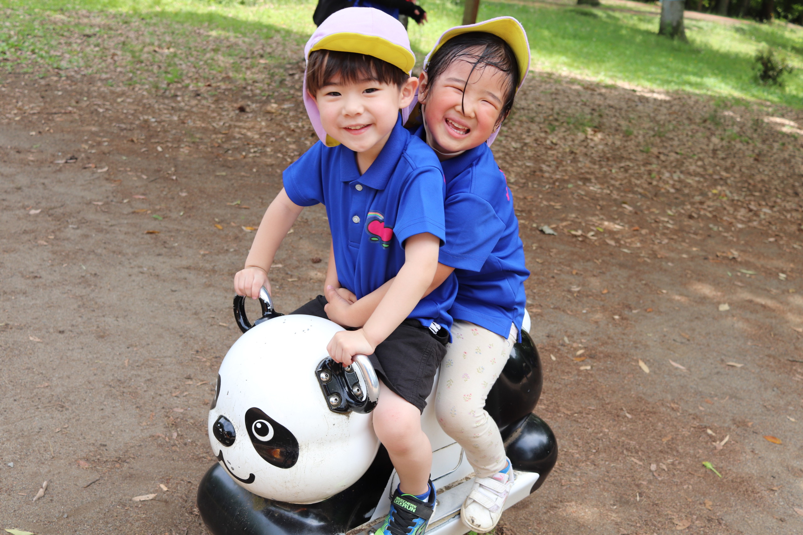 遠足日和のとってもいいお天気の中、バスに乗って洞峰公園へ出発!運転手さんに挨拶をして、初めて乗るバスに大興奮です🐼