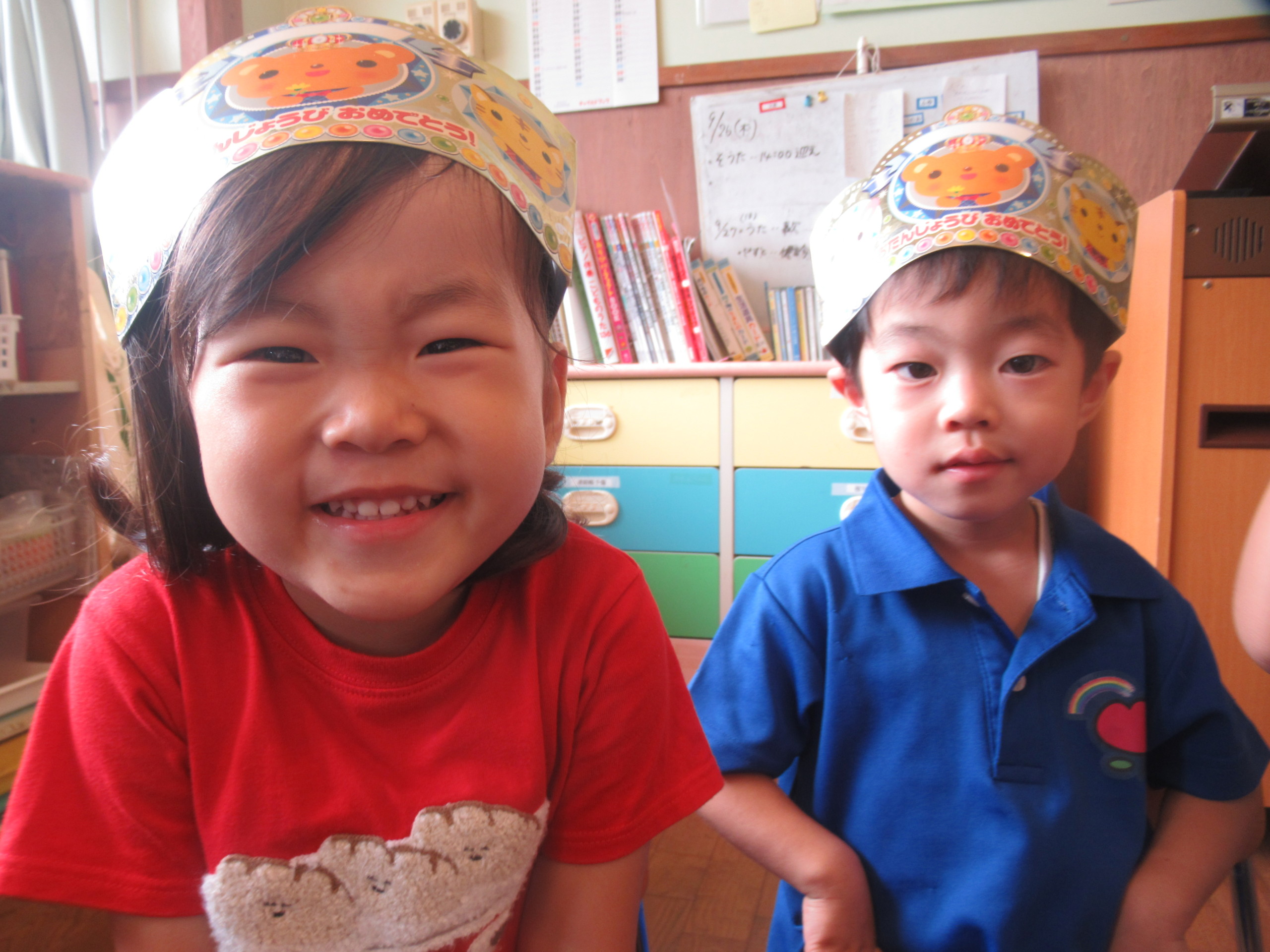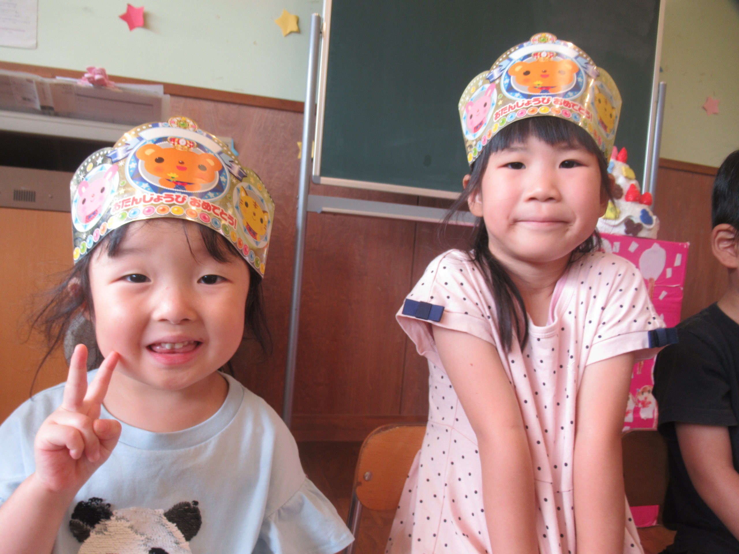 キラキラの王冠をかぶせてもらい、にこにこ笑顔が可愛い誕生児のお友だち💕