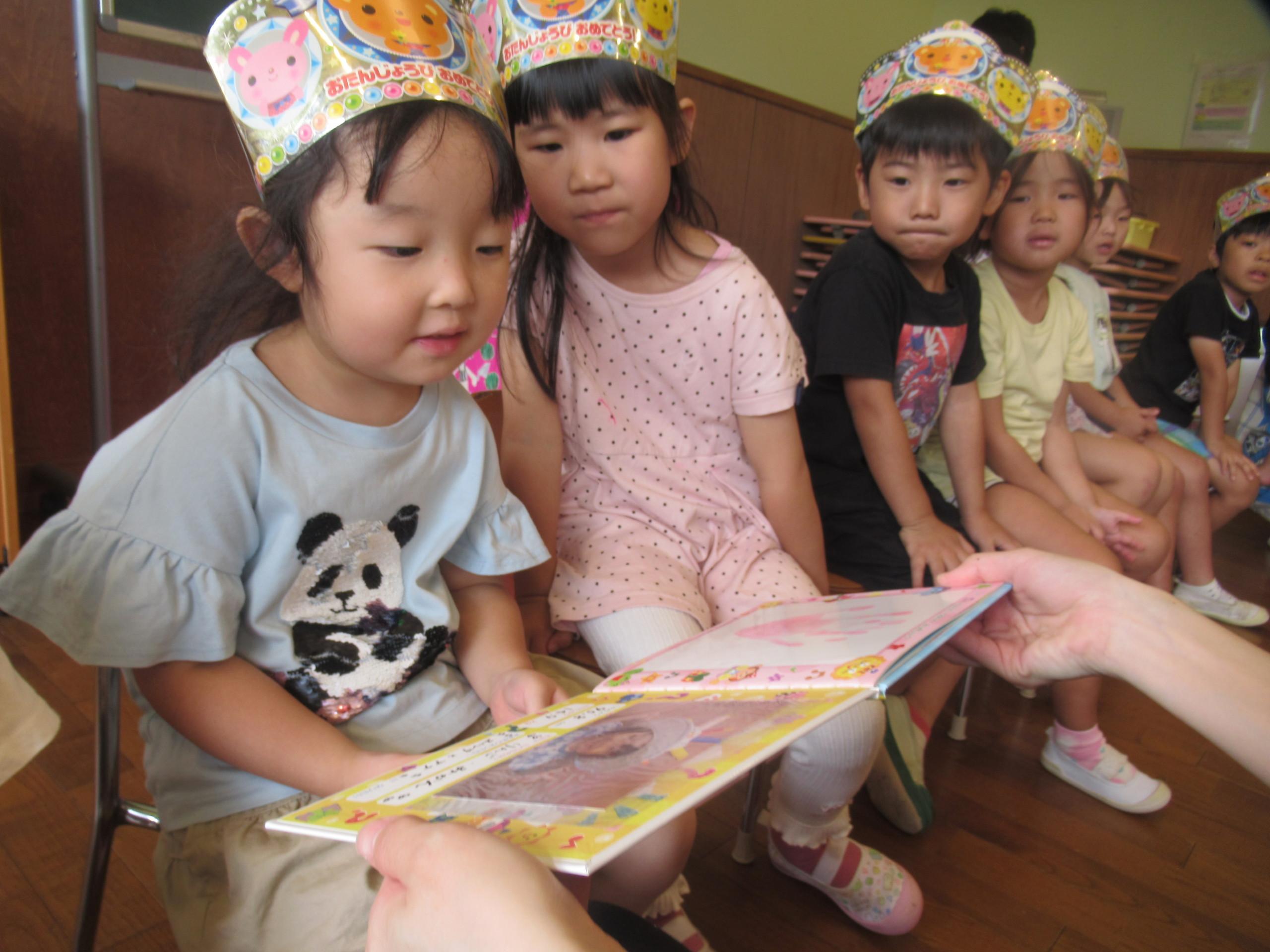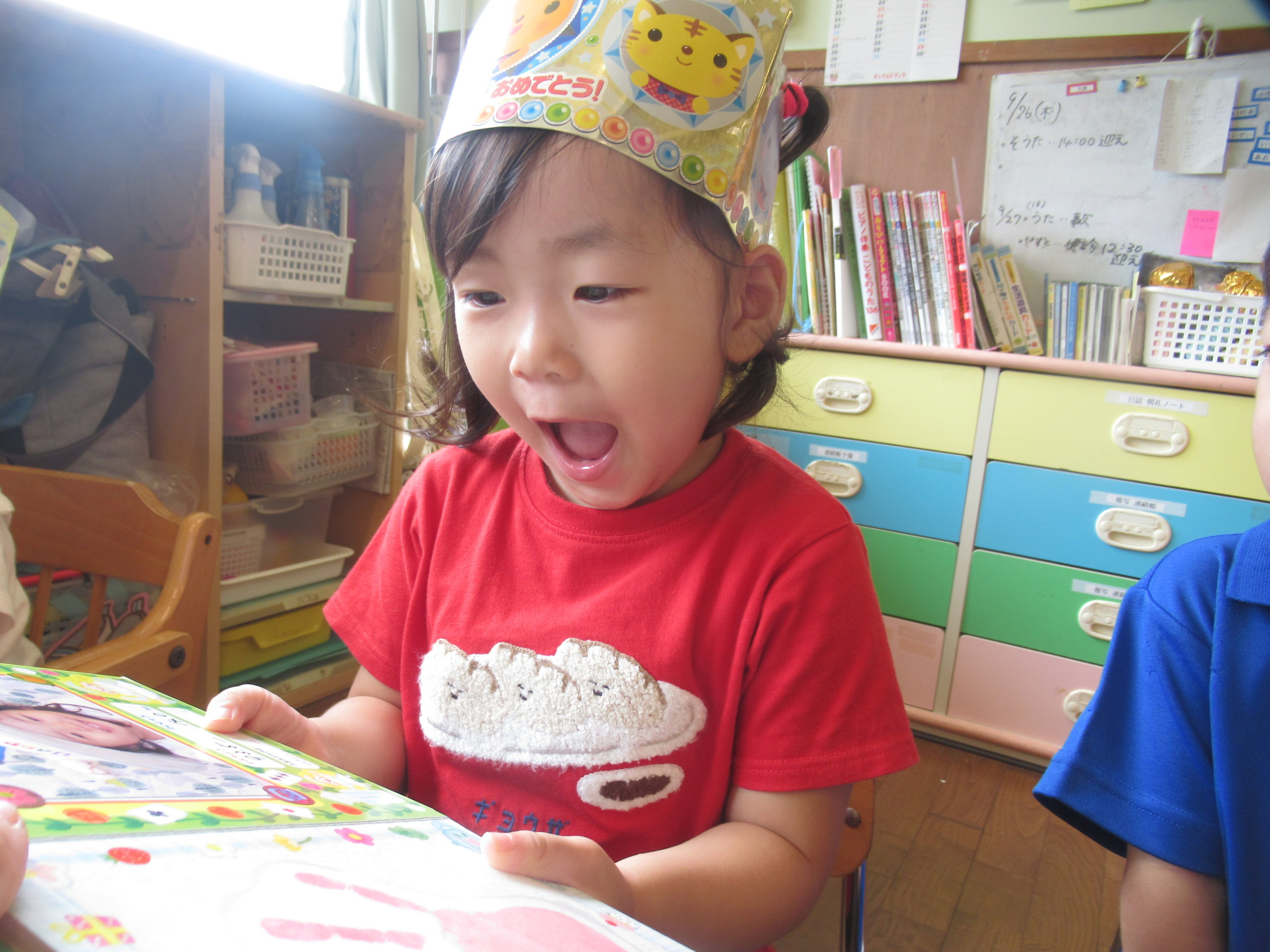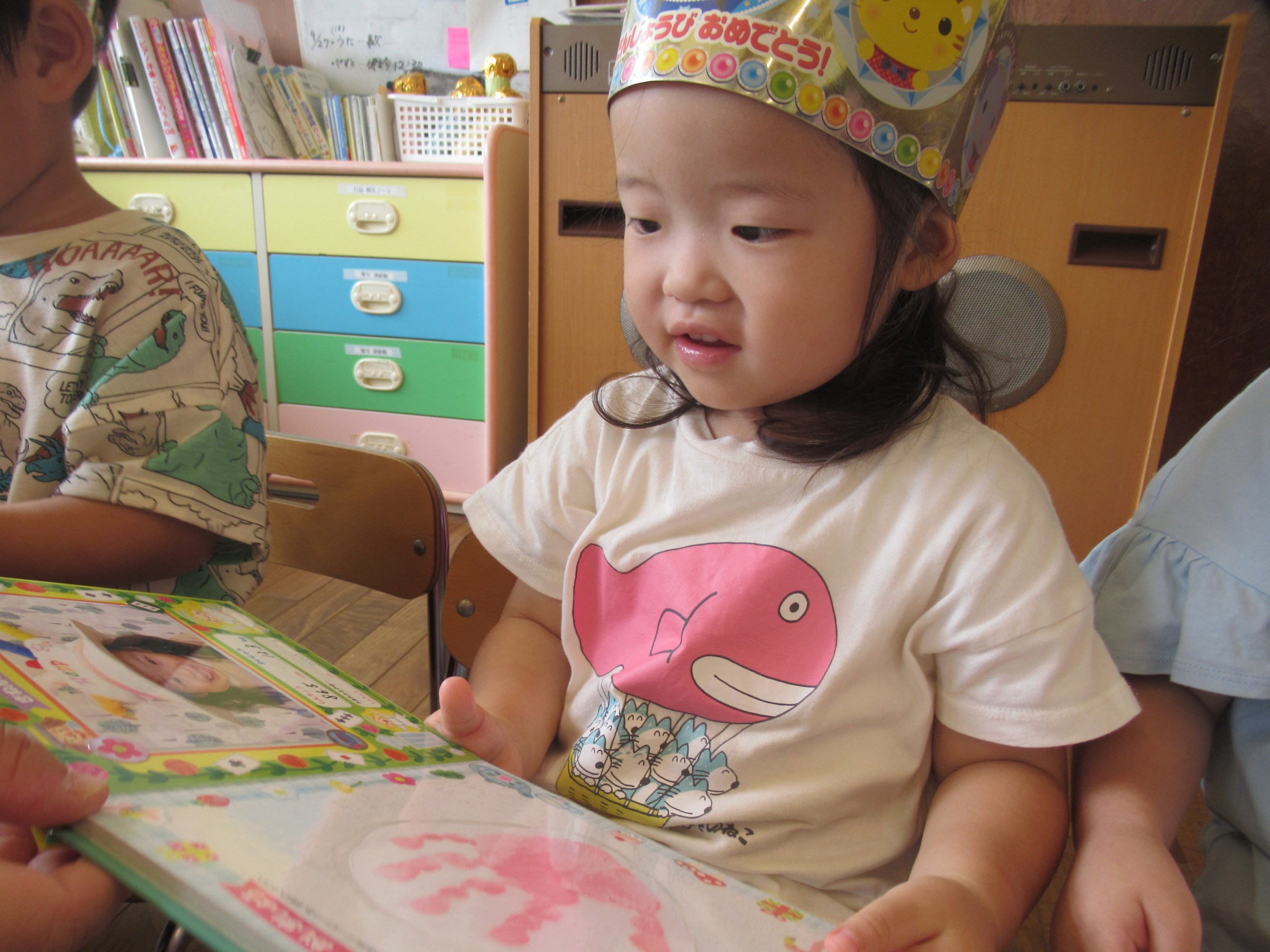 みんなからは、お歌のプレゼント!バースデーブックのプレゼントでは、嬉しそうに中身をめくって見ていましたよ。