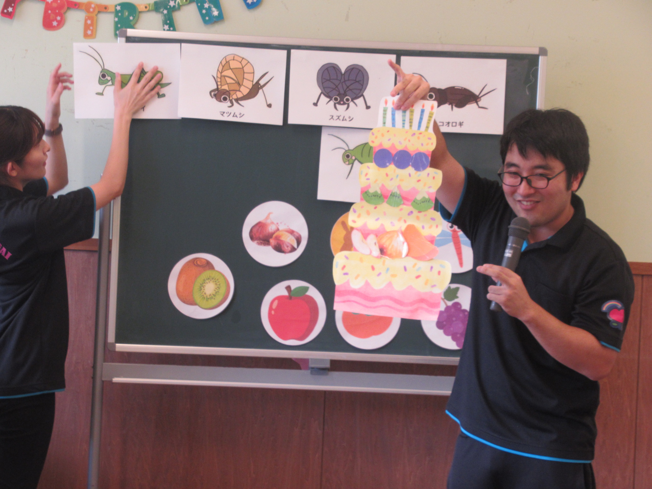 ぶどうや柿、トンボ、栗など、『秋』にちなんだものが出てきてみんな大喜びです☺