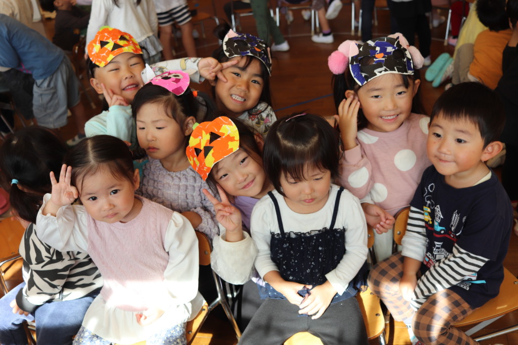 30日はこあら組・ぱんだ組・ぞう組のお友だちで一緒に遊びましたよ!自分たちで製作したハロウィンの仮装アイテムを持って、椅子取りゲームをして楽しみました。音楽に合わせて、おばけたちが歩く様子が可愛らしいですね🥰