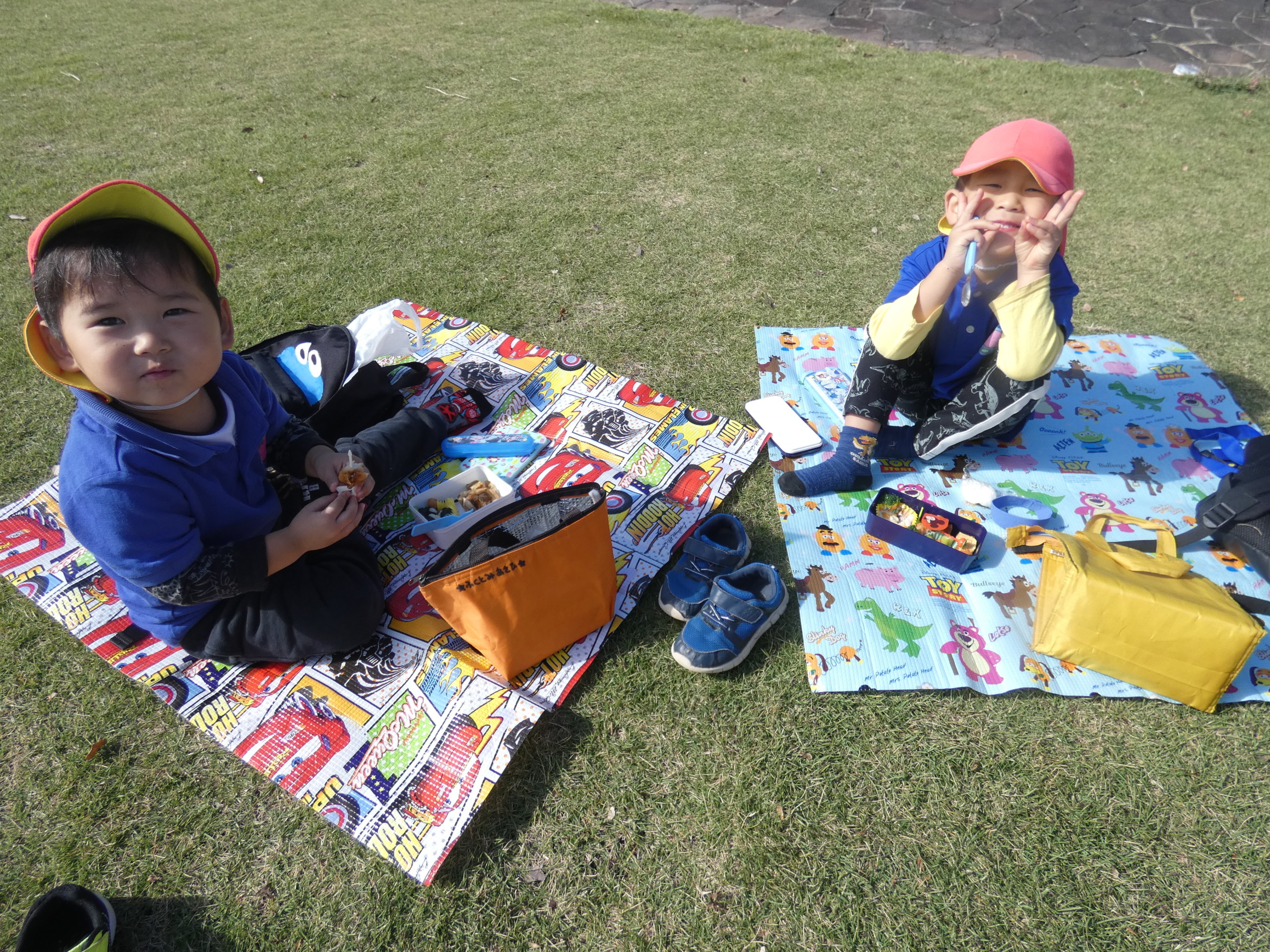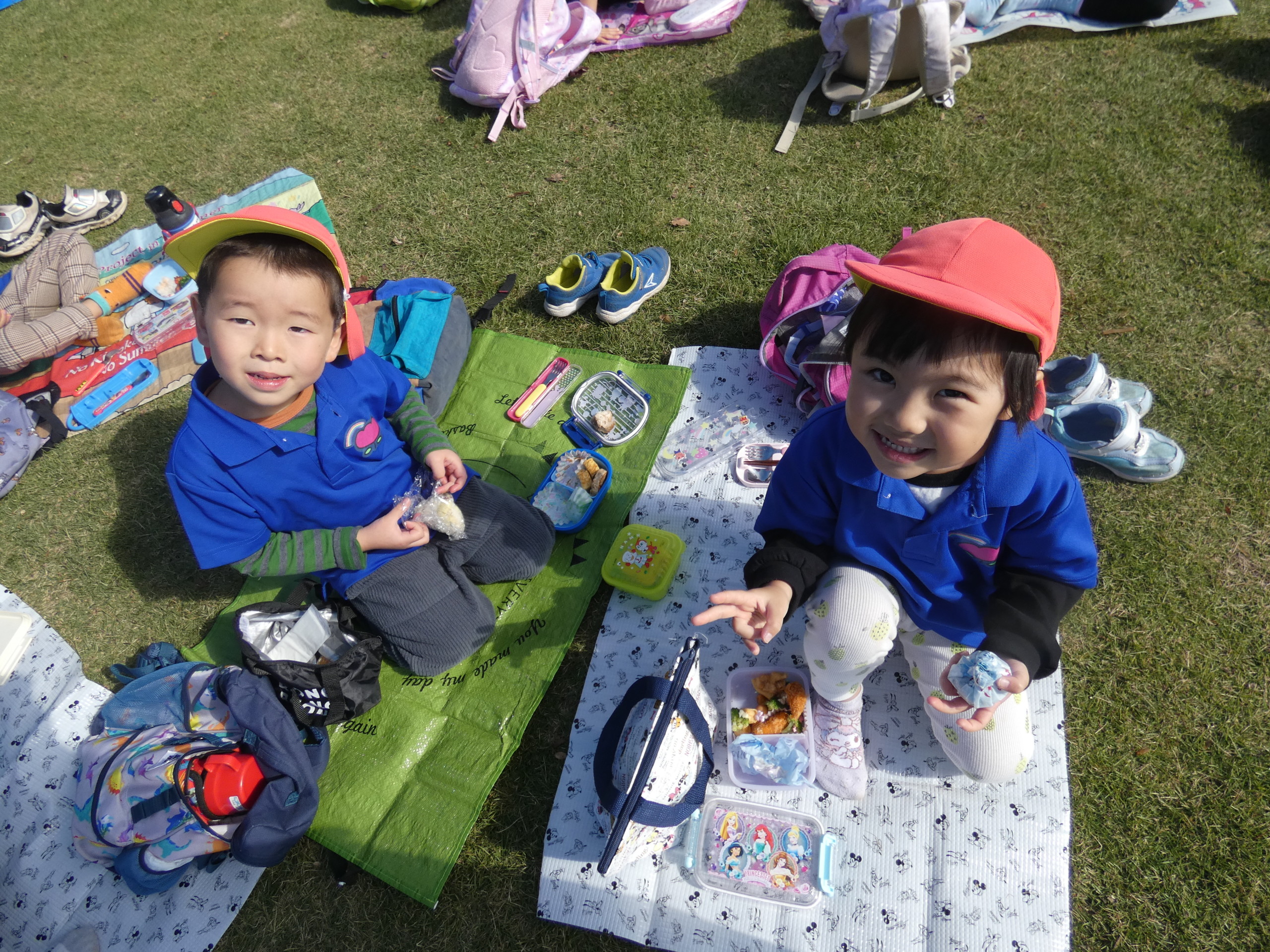 「はやくお弁当食べたいな~」とウキウキしていた子どもたち。お友だちと一緒にレジャーシートを一生懸命に広げる姿も可愛らしかったです♡