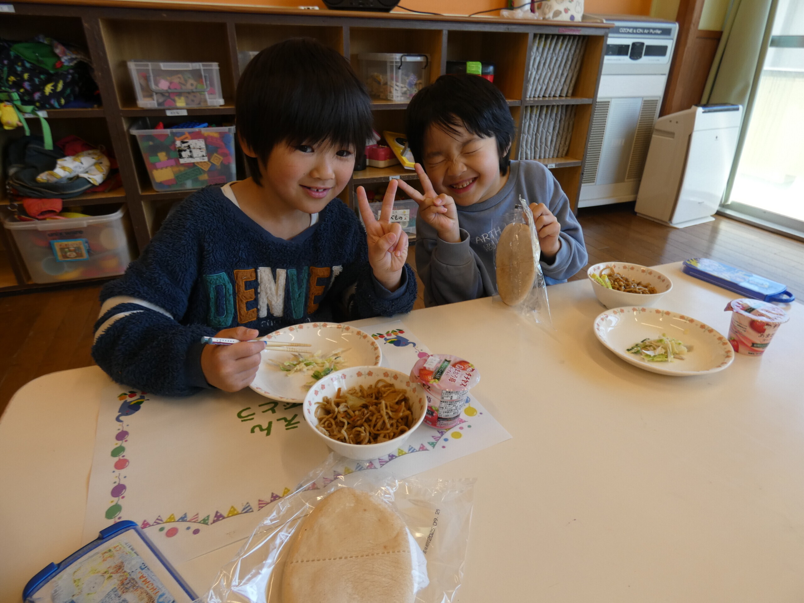 おわかれ会の後は、こあら組さん~ぞう組さんのお友だちみんなで給食を食べました😋仲良くお話しながら、楽しい時間を過ごしましたよ💕