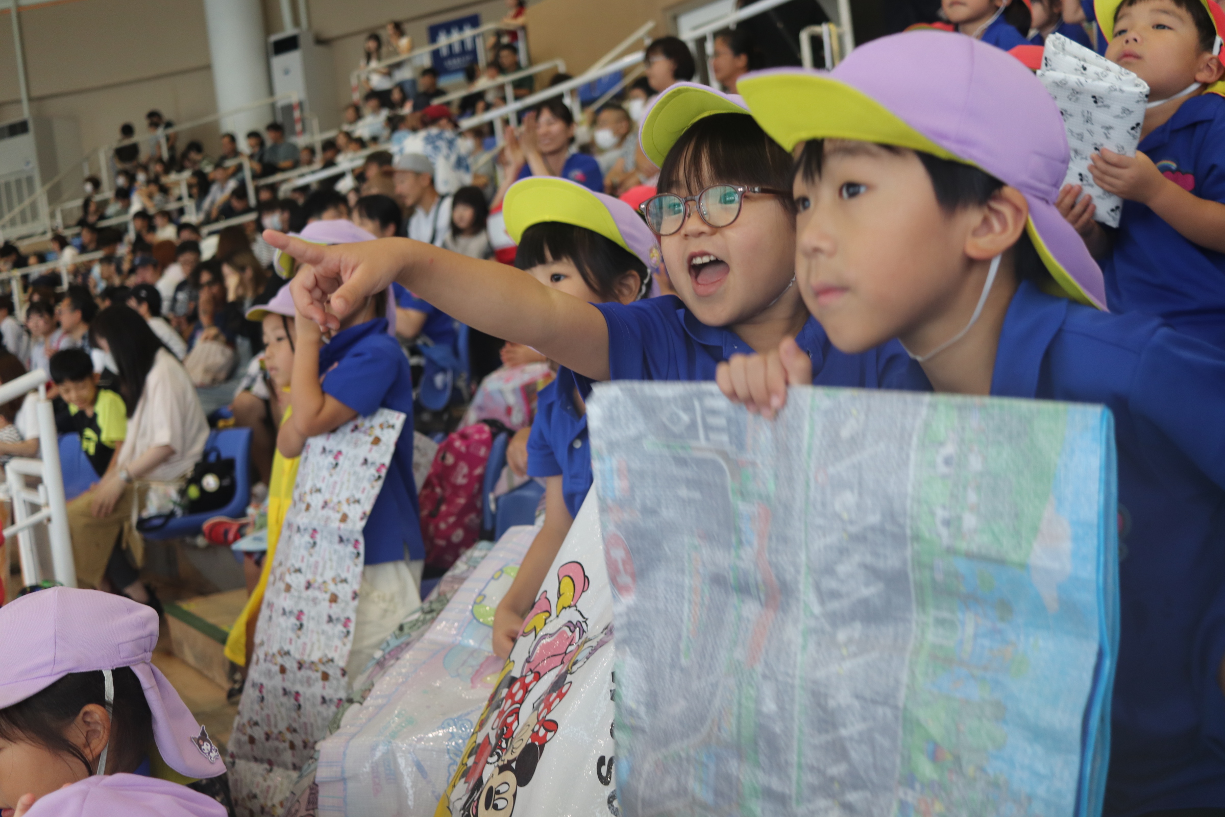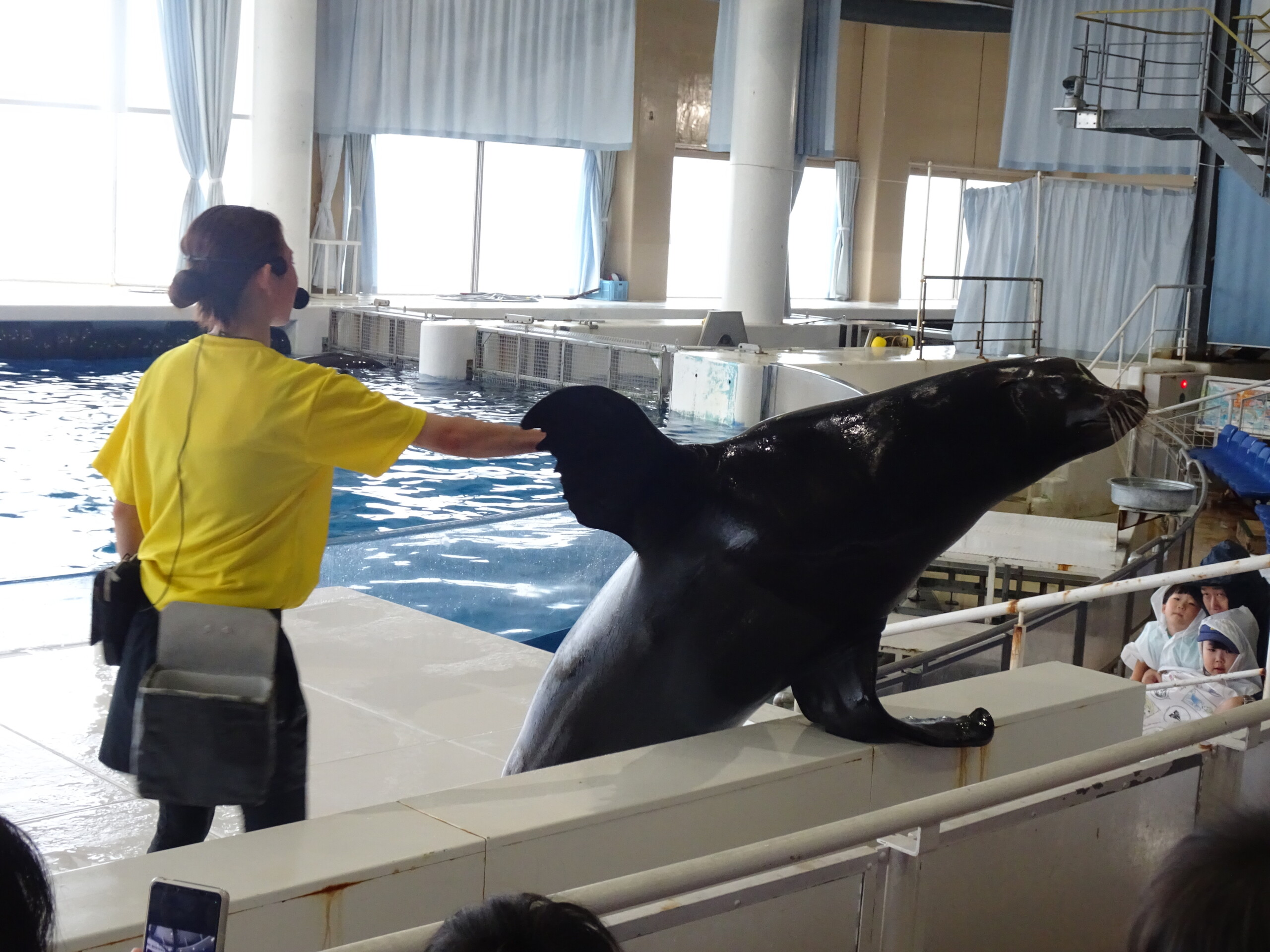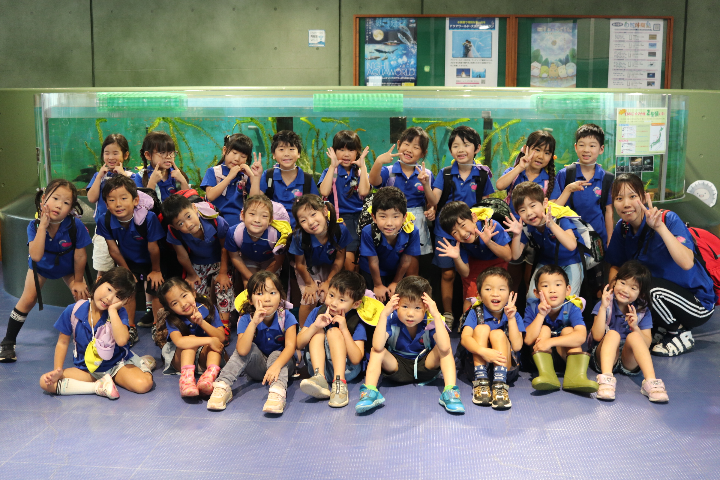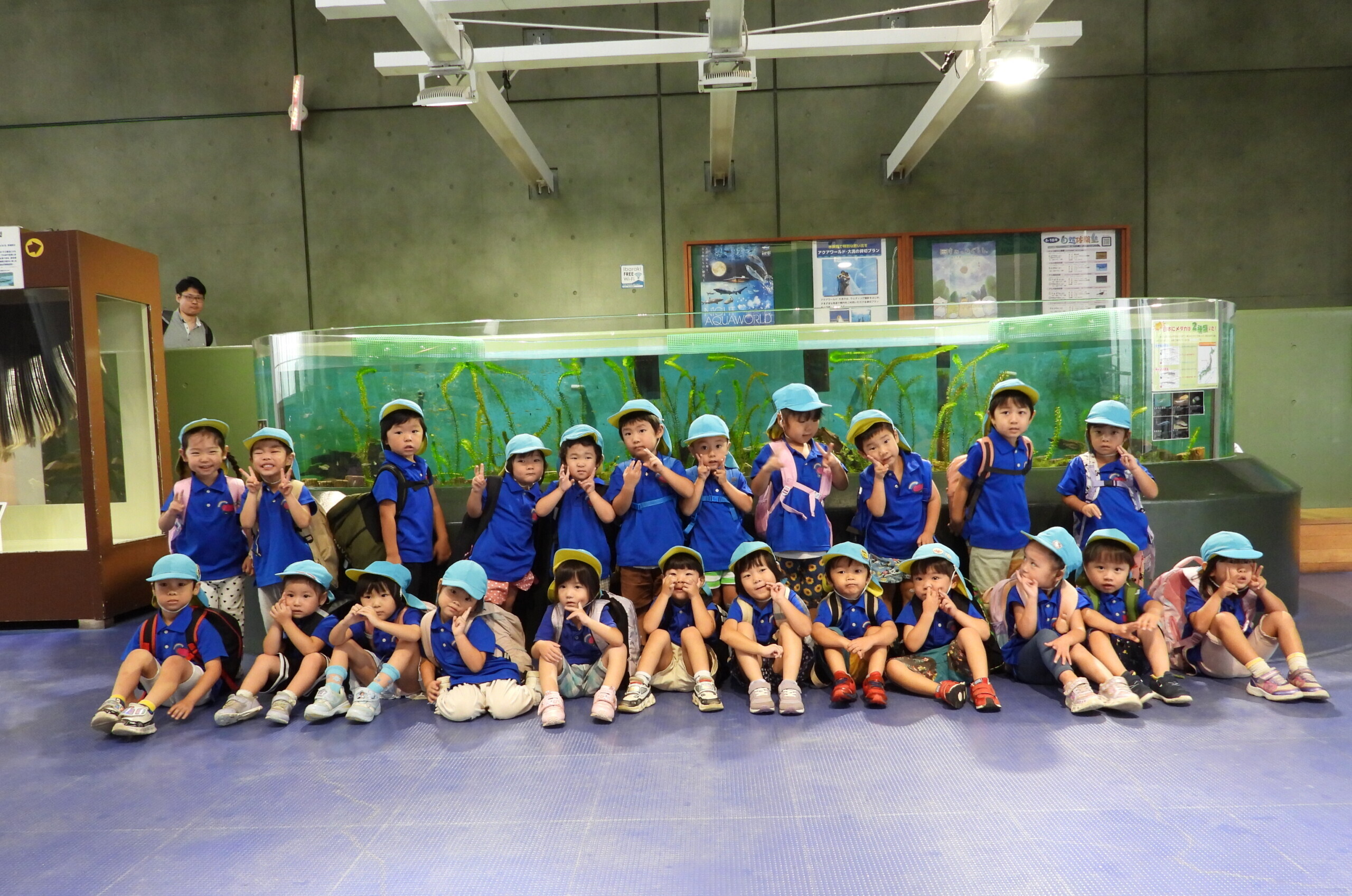 あっという間に、水族館に到着!まずはみんなでイルカショーを見ました🐬アシカの決めポーズやイルカの迫力あるジャンプに大興奮!「すごいね!」「水がかかったよ~!」と嬉しそうに拍手をして盛り上がっていました。前列のお友だちは水しぶきにびっくりしながらも、楽しそうにショーを見ていましたよ👀