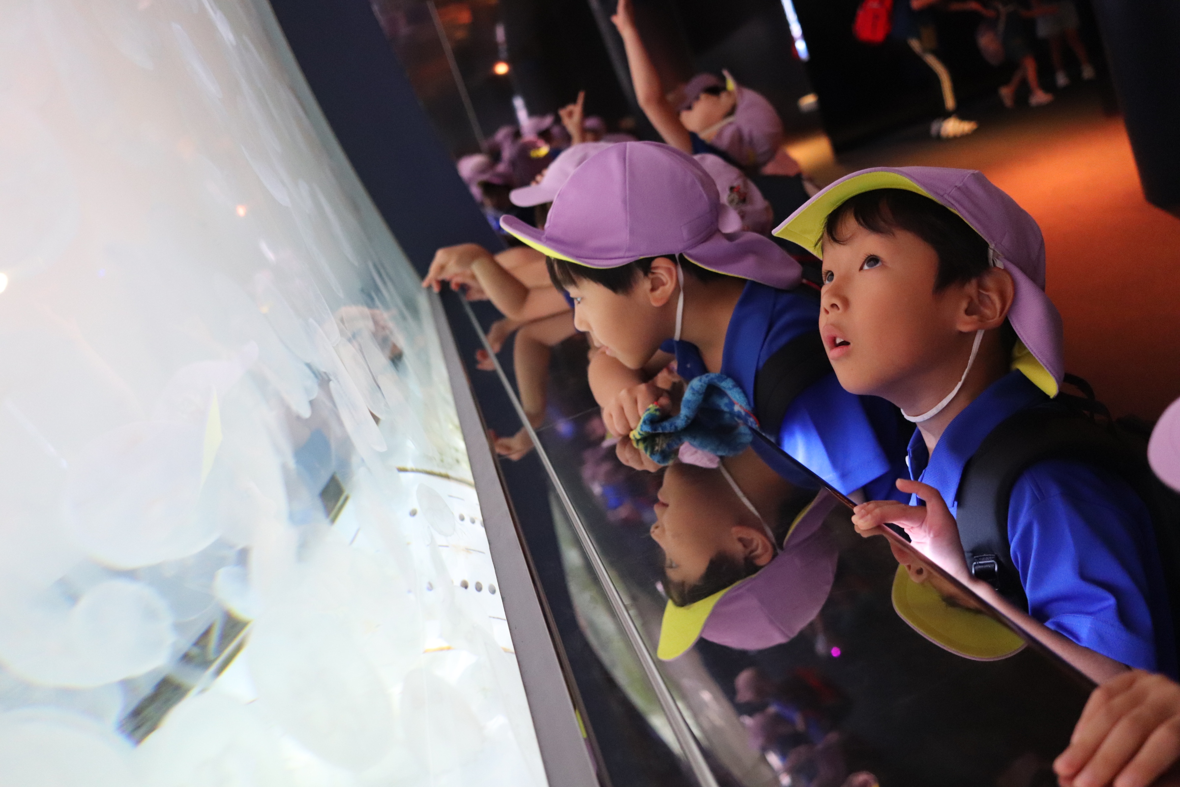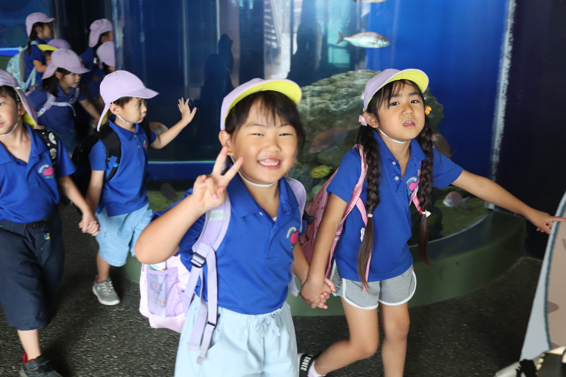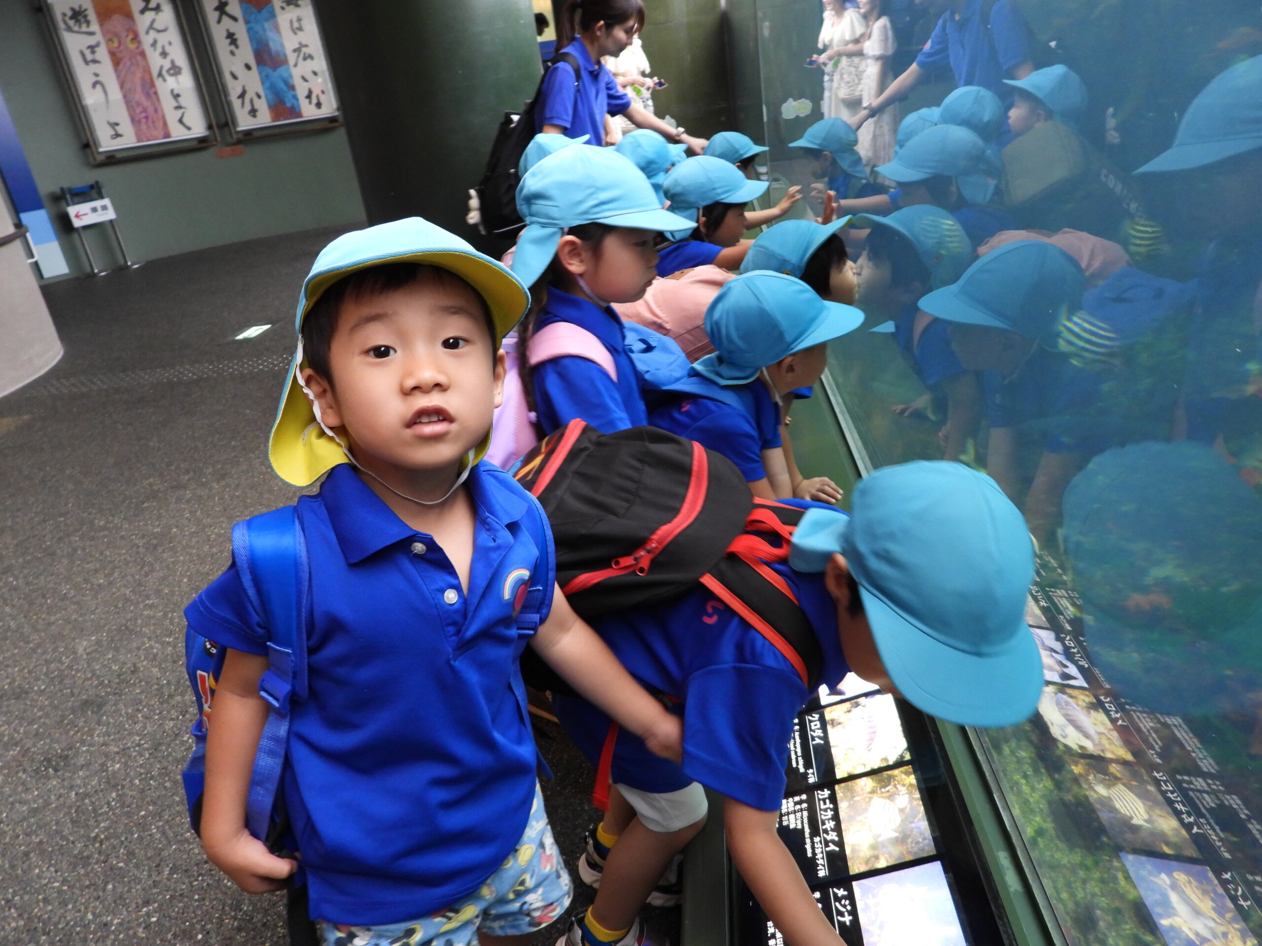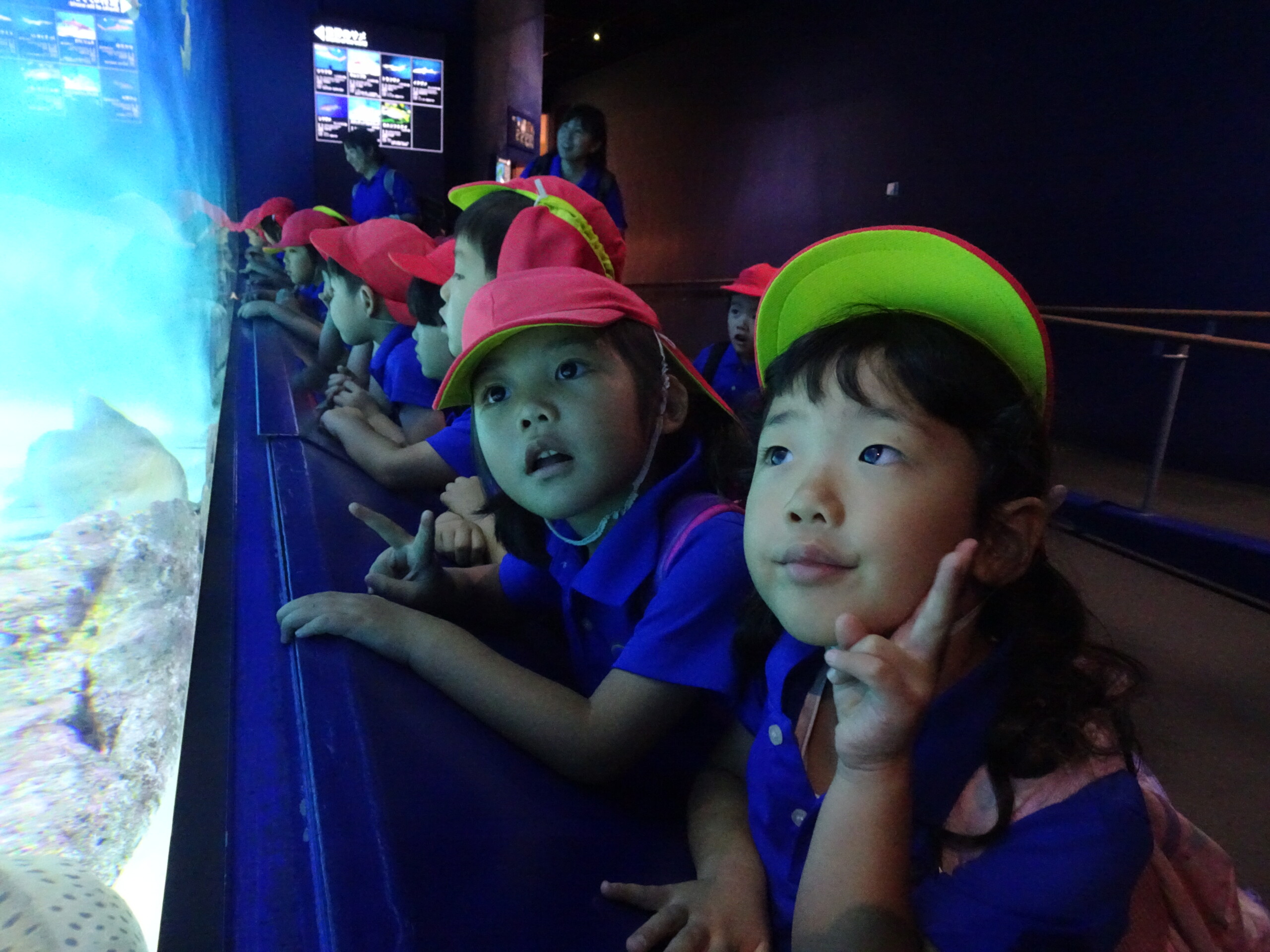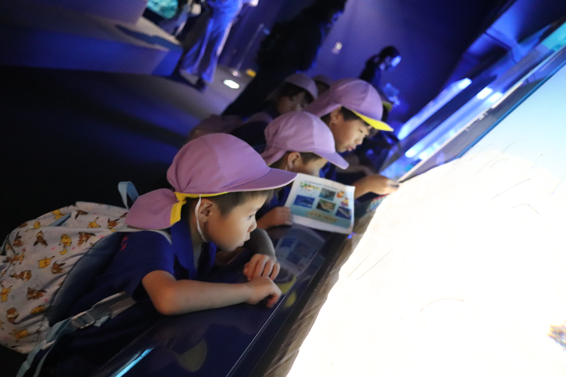 クラスごとに館内を見学をしましたよ。お友だちや先生と手を繋いで、「サメおおきいね~!」「いっぱい泳いでるよ!」とお話しながら色々な生き物を見ていました!遠足のしおりを出して、「このお魚いるかな?」「あっ!このお魚じゃない!?」と載っている写真と照らし合わせながら真剣に見学する様子も✨学びが深まりましたね!