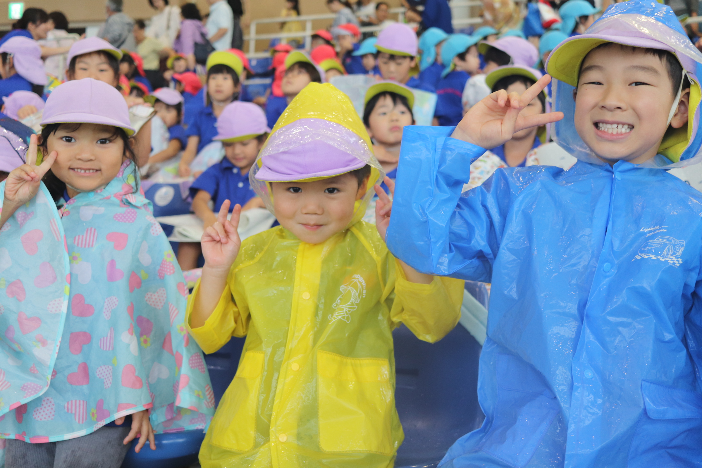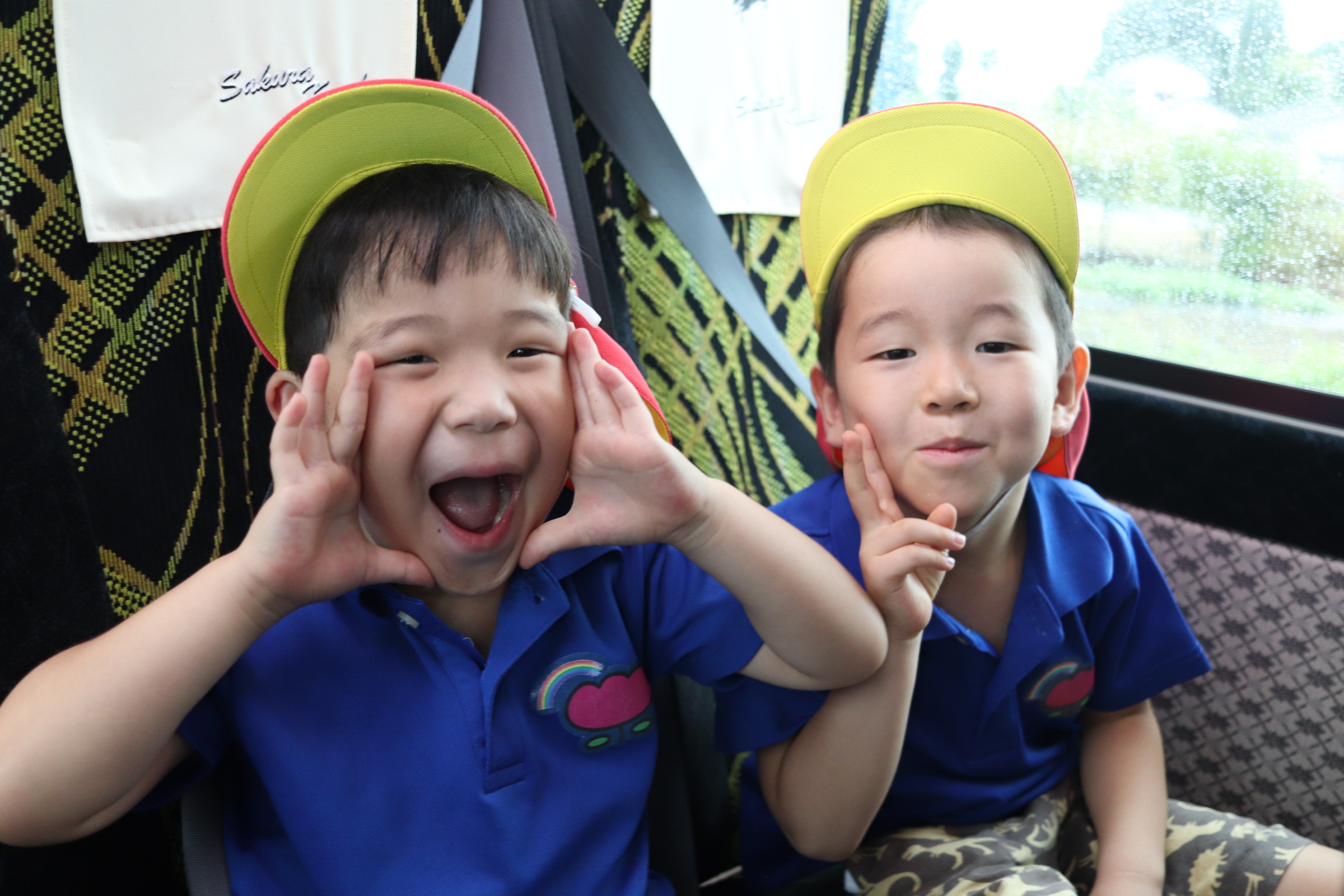 子どもたちがとっても楽しみにしていた遠足の日がやってきました!この日まで、「あと何回寝たら遠足かなぁ~?」とカウントダウンをしながら待ち遠しそうな様子が見られましたよ。あいにくのお天気でしたが、お友だちはカッパや傘を持って準備万端✨ワクワクドキドキしながら大きなバスに乗りこんで、いざ出発です🚌