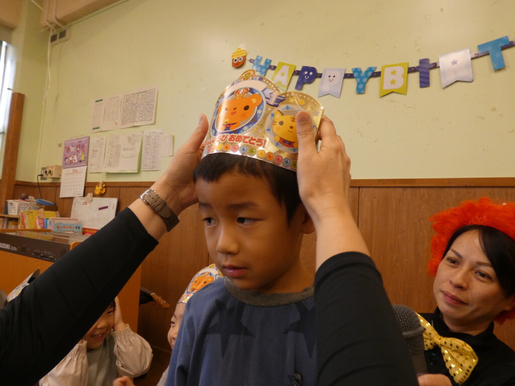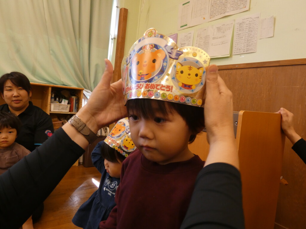 まずは、園長先生に王冠をかぶせてもらいました!ピカピカな王冠がとても似合いますね👑