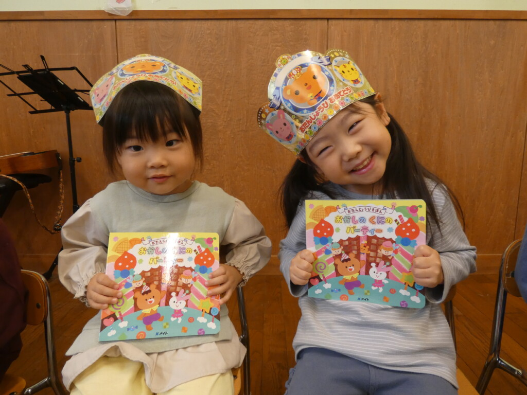 みんなから歌のプレゼントや担任の先生から誕生日ブックのプレゼントをもらい嬉しそうなお友だち(^O^)