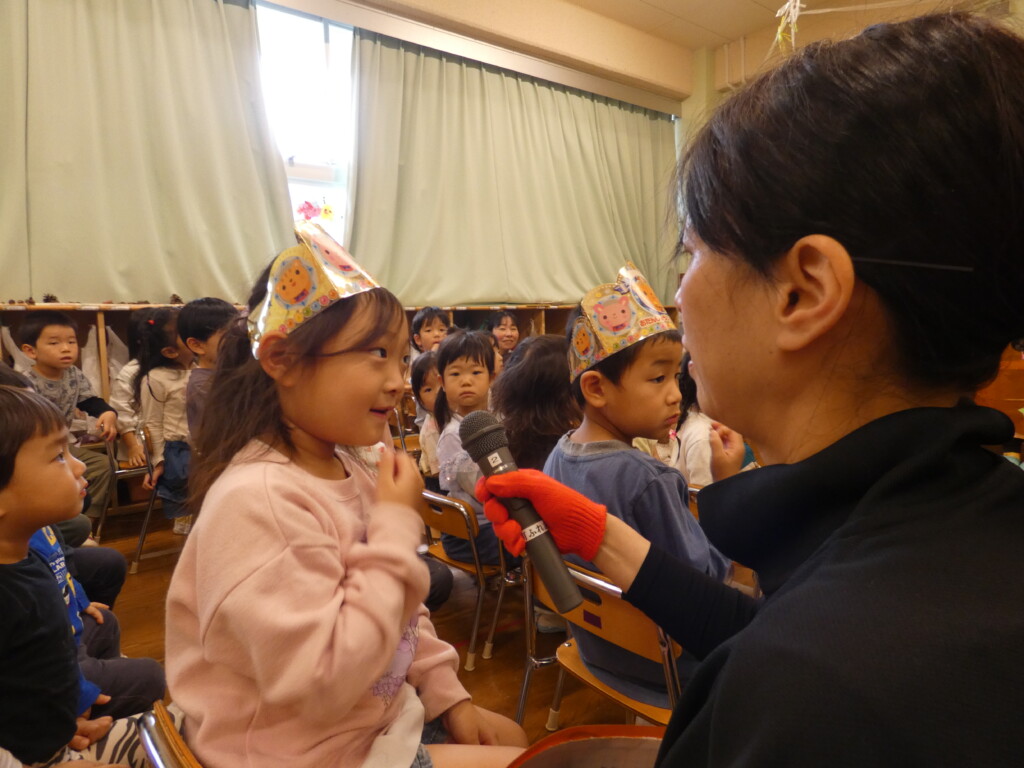 「何歳になりましたか?」「好きな食べ物は何ですか?」「大きくなったら何になりたいですか?」とインタビューされると、少し緊張しながらも大きな声で教えてくれました✨