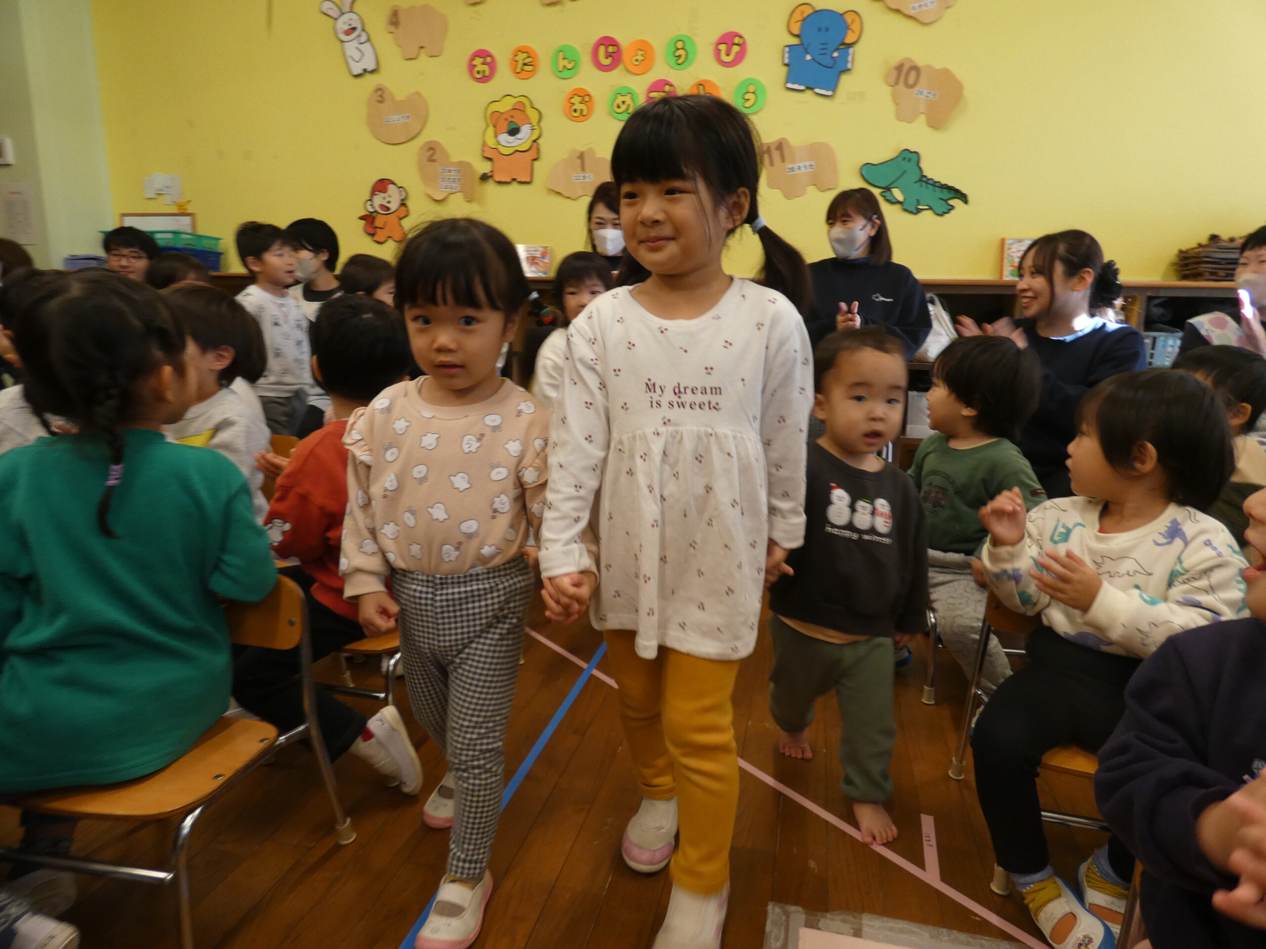 陽気なクリスマスの音楽で、12月生まれのお友だちの入場です✨