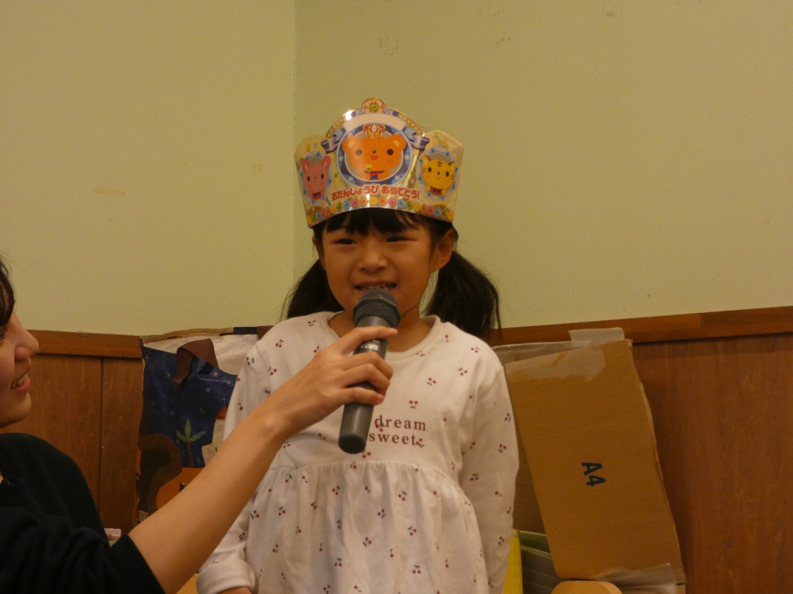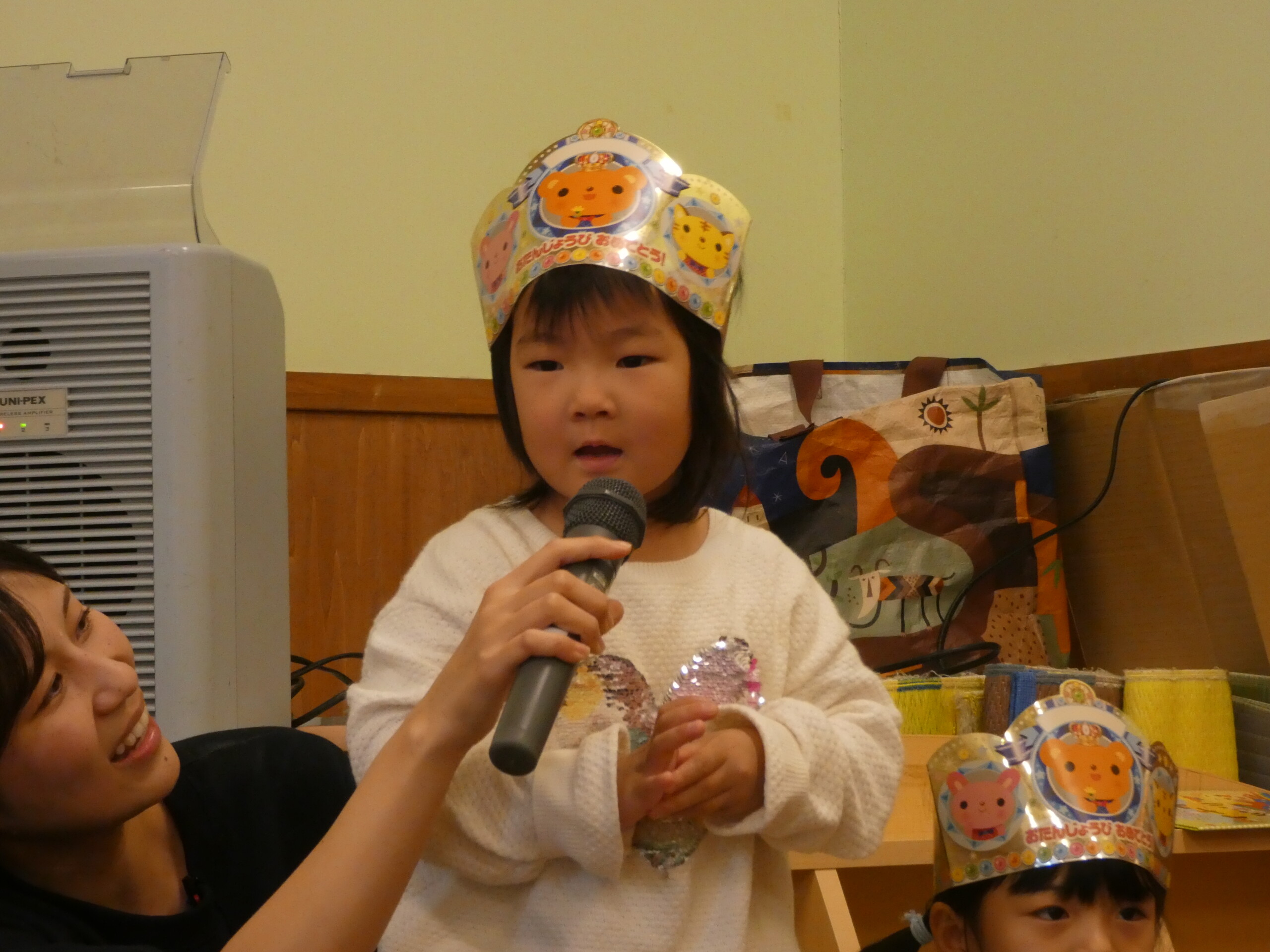 園長先生から、キラキラの王冠を被せてもらって「ありがとう」と伝えるお友だち💕