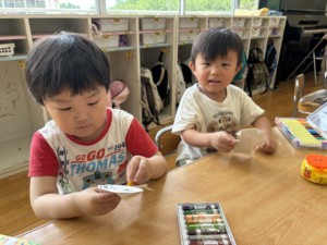 今回のお題は4歳児さんは『てるてる坊主』、5歳児さんは『カエル』でした。