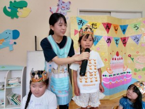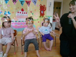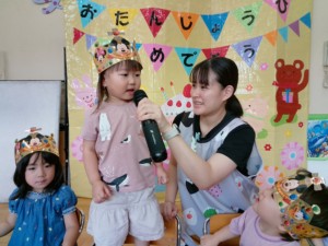 誕生児さんにみんなでハッピーバースデーの歌をプレゼント♪