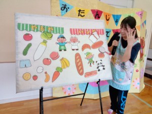 先生からのおたのしみは、やおやさんとパン屋さんのパネルシアターです。