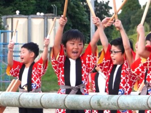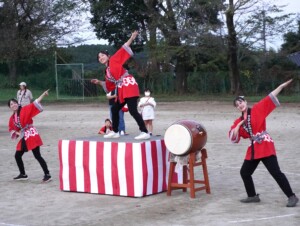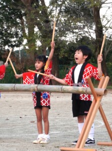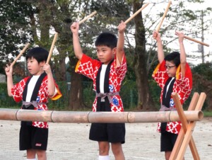 あきまつり当日、オープニングセレモニーではぞう組さんの竹太鼓の演奏が披露されました。
