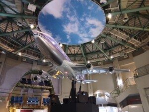 博物館に近づくといつもは高い空の上を飛んでいく飛行機が目の前を通っていく様子に驚きと感動を感じていました。