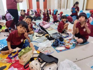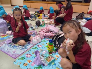 ひこうきの丘でおやつタイムです。