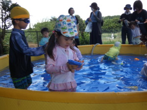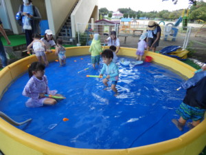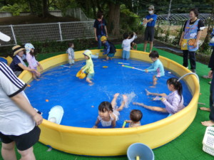 今日は「夏の思い出」ということで、みんなで水あそびをしました。