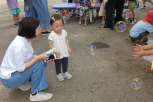 みんなの予想以上にたくさんのしゃぼん玉が出て、歓声が上がりました😊