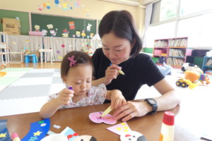 今日のくれよんぱーくでは、七夕のペープサートを見た後、七夕製作をしました!