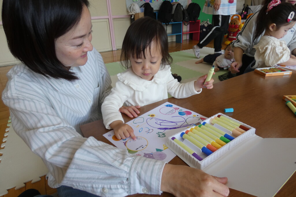 最初は少し緊張した表情のお友達も、「またあした」の歌を歌う頃には緊張も取れ、楽しそうにあそんでいましたね🎶