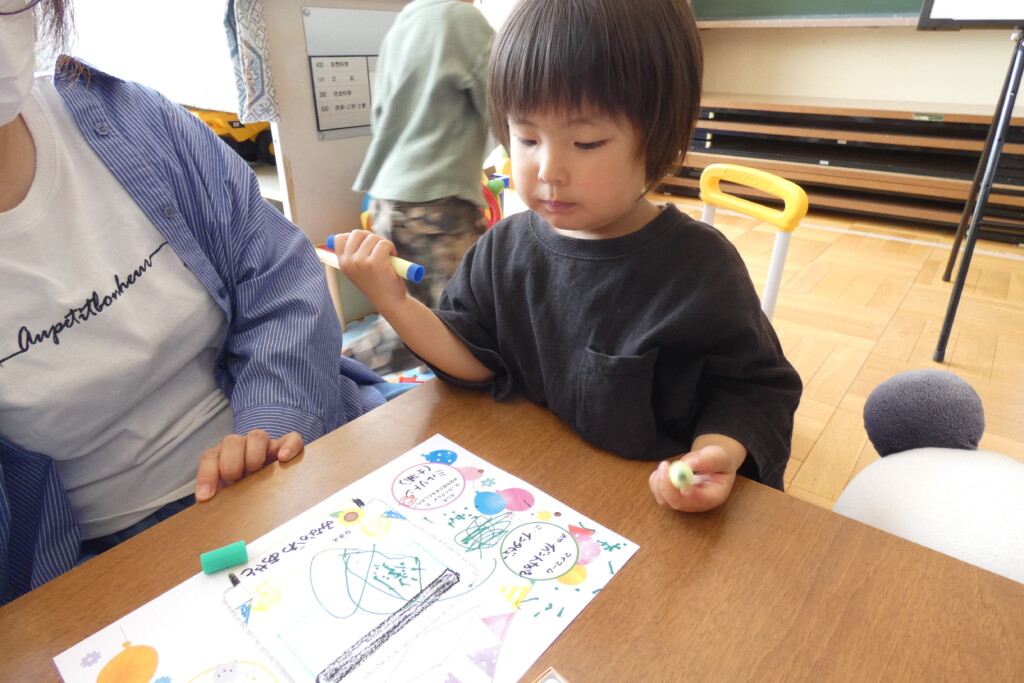 今日の活動は、自己紹介カードを親子で記入してもらい、順番に発表してもらいました!