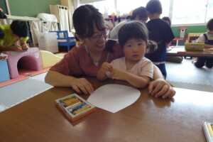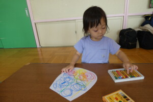 絵の上から塗っちゃうの?と少し不安そうな表情だったお友達も「クレヨンがはじかれてる!」と不思議そうな表情に変わりました☺