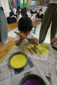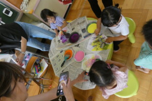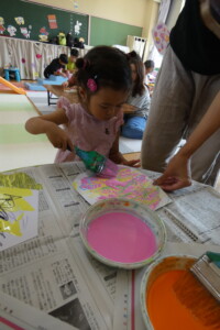 描き終わったお友達は、ジュースに見立てた絵の具を選びます!