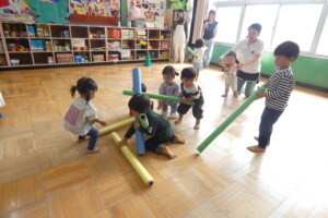 自分の身の丈ほどある棒を、一生懸命引っ張っていく子どもたちの姿と言ったら・・・・キュンキュンですね💖