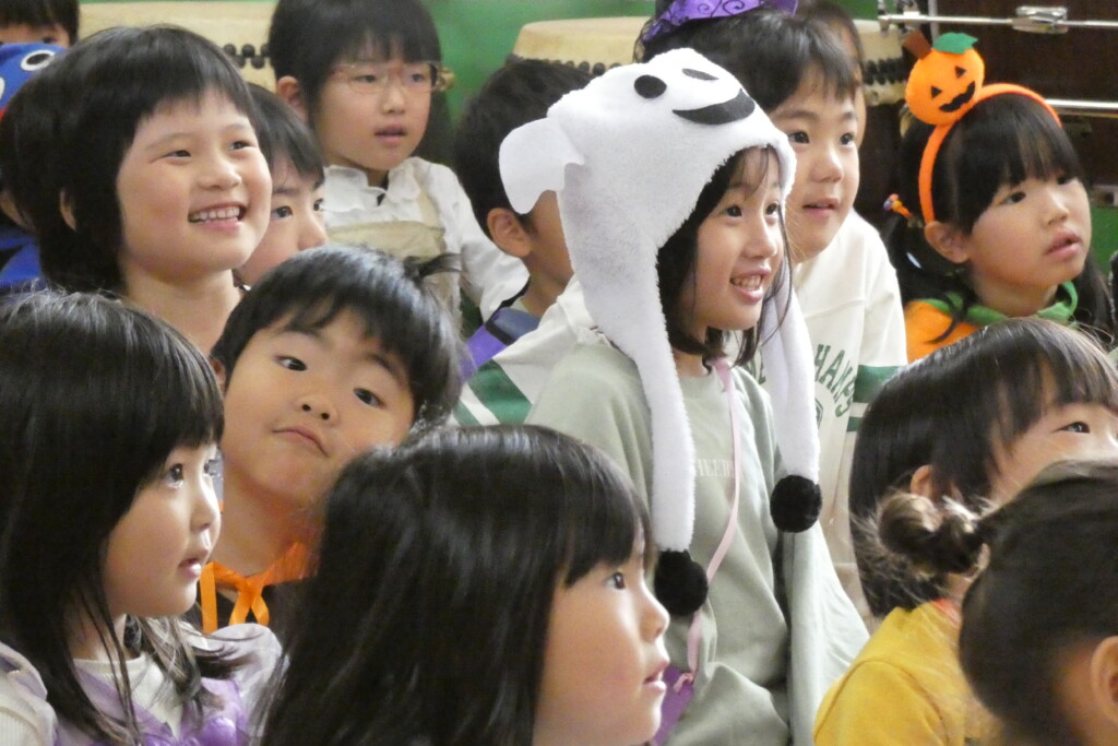 ハロウィン集会を行い、ハロウィンの由来を聞いたり、私は誰でしょう~?クイズ、パネルシアター「おばけマンション」を楽しみましたよ😁