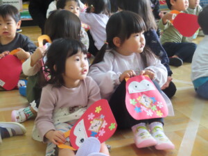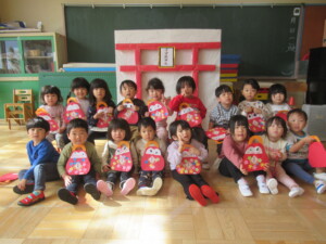 今日は七五三集会でした😊みんな、手作りのあめ袋を持って参加しました🎵