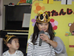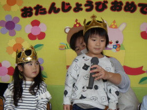月の歌をみんなで歌い、お友だちからは♪ハッピーバースデイの歌をプレゼントしてもらいました。