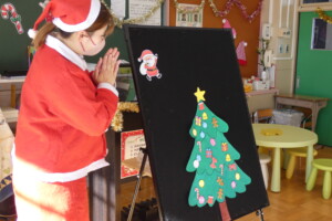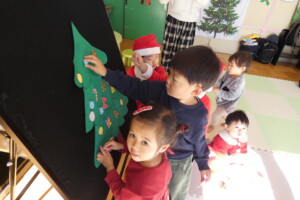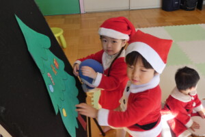 登園してくると、サンタさんやクリスマスカラーのお洋服を着てるお友達もいて、とっても可愛かったです🥰