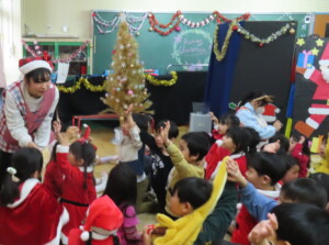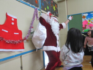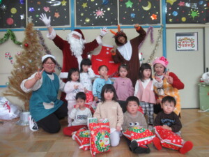 みんなで「メリークリスマス!」と唱えると、鈴の音と共にサンタさんがプレゼントを持って来てくれました!!🎅✨