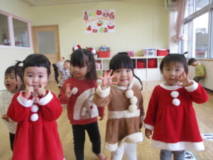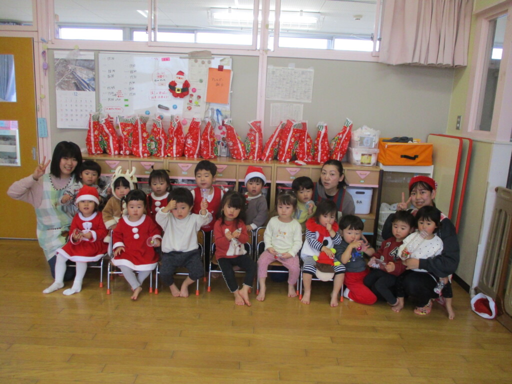 今日は待ちに待ったクリスマス!朝から「プレゼントもらったよ!」「サンタさん来た~!」とにこにこウキウキの様子🎶可愛いサンタさんやトナカイの洋服をきているお友だちもいました✨