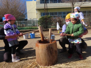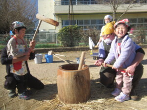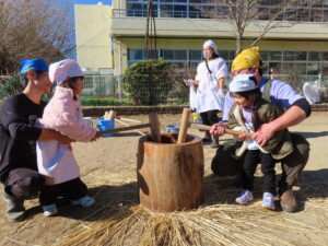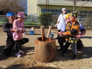 練習通りに「よいしょ~ よいしょ~」と大きな声でお餅をつくことが出来ました!