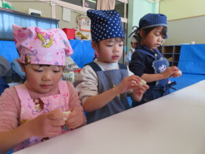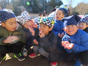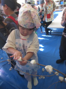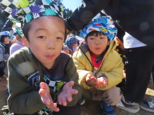苦戦するお友達の姿もありましたが、お餅の柔らかさや出来立ての温かさを感じることが出来ました🌞