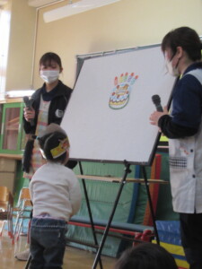 そして、先生たちからのプレゼントは、「たんじょうびには」というペープサートでした👑