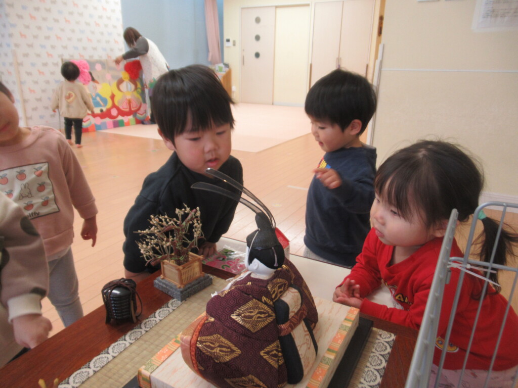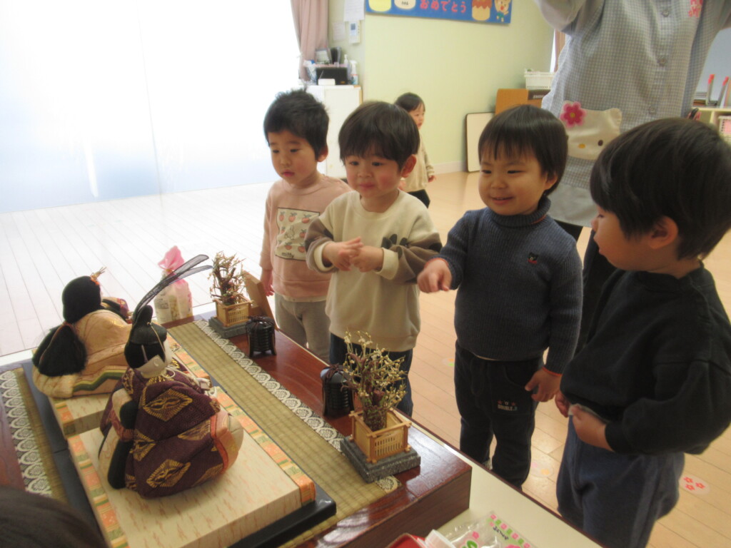 雛人形や、ひなあられ、ひし餅、甘酒をみんなでじっくりと見ていました👀