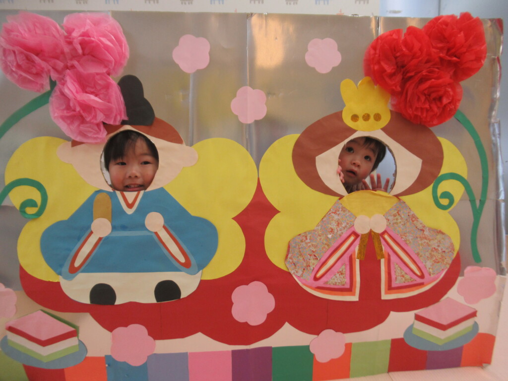 パネルシアターでは、曲に合わせてひな壇に人形を並べました!